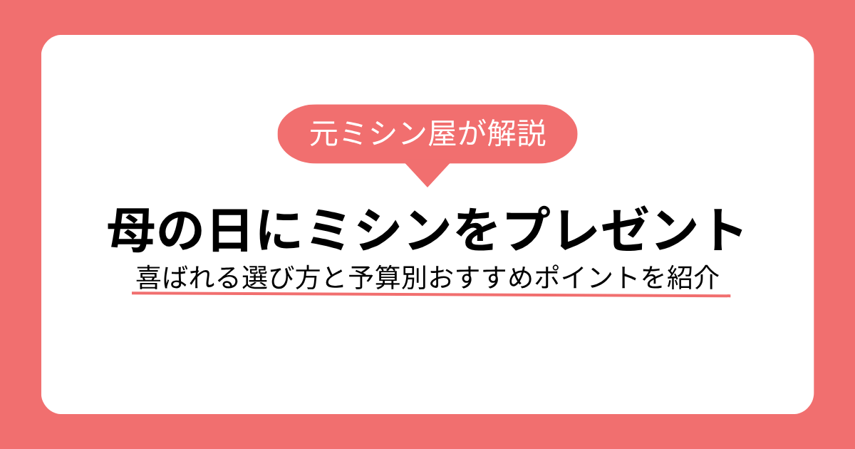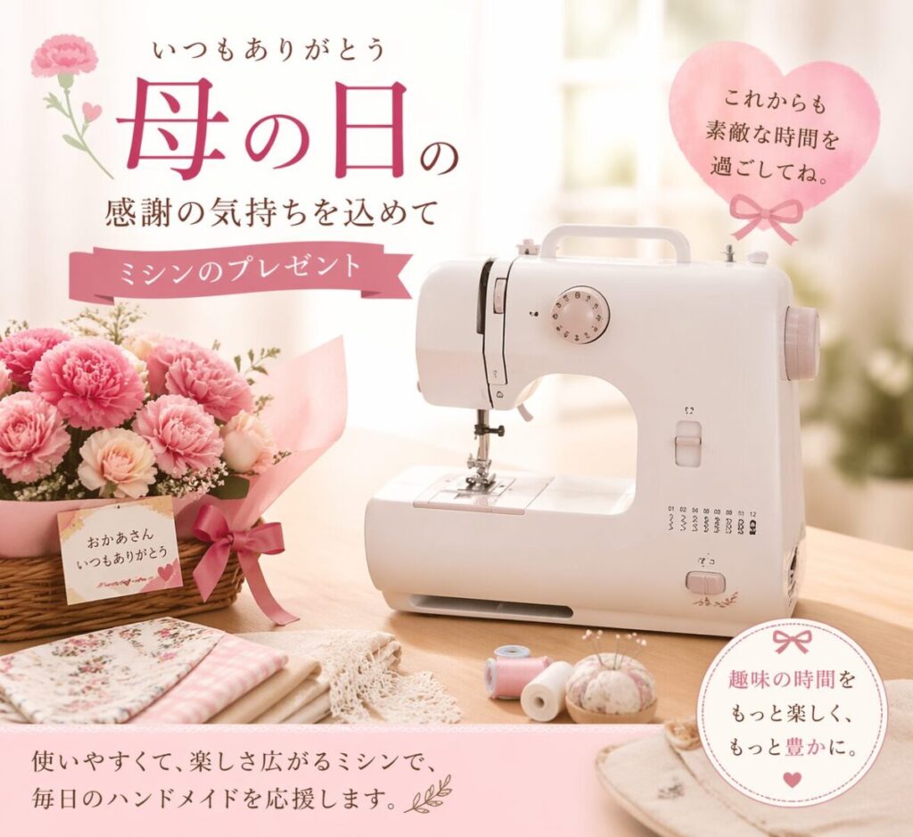 この記事では、母の日にミシンを贈るメリット・選び方のポイント・予算別の選び方・贈るときの注意点まで、まとめて解説します。ミシンに詳しくない方でも迷わず選べるよう、わかりやすくお伝えします。