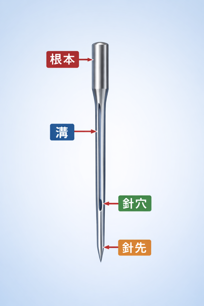 ミシン針には主に以下のような構造があります。