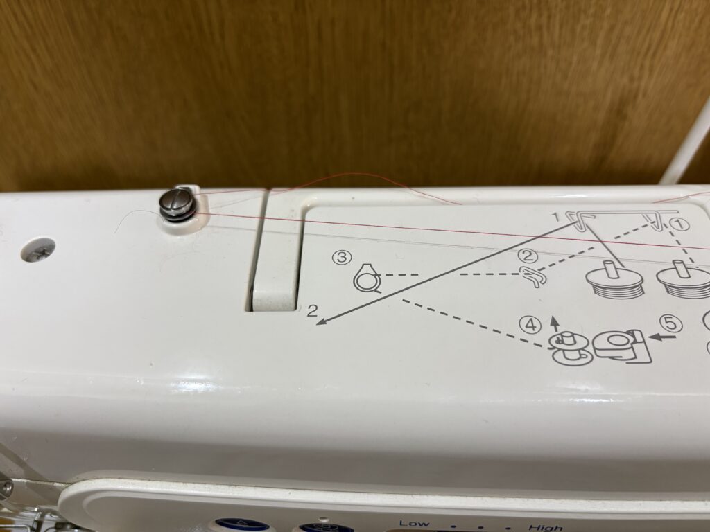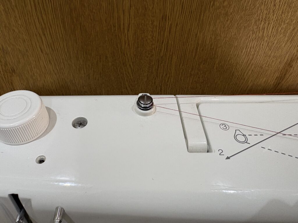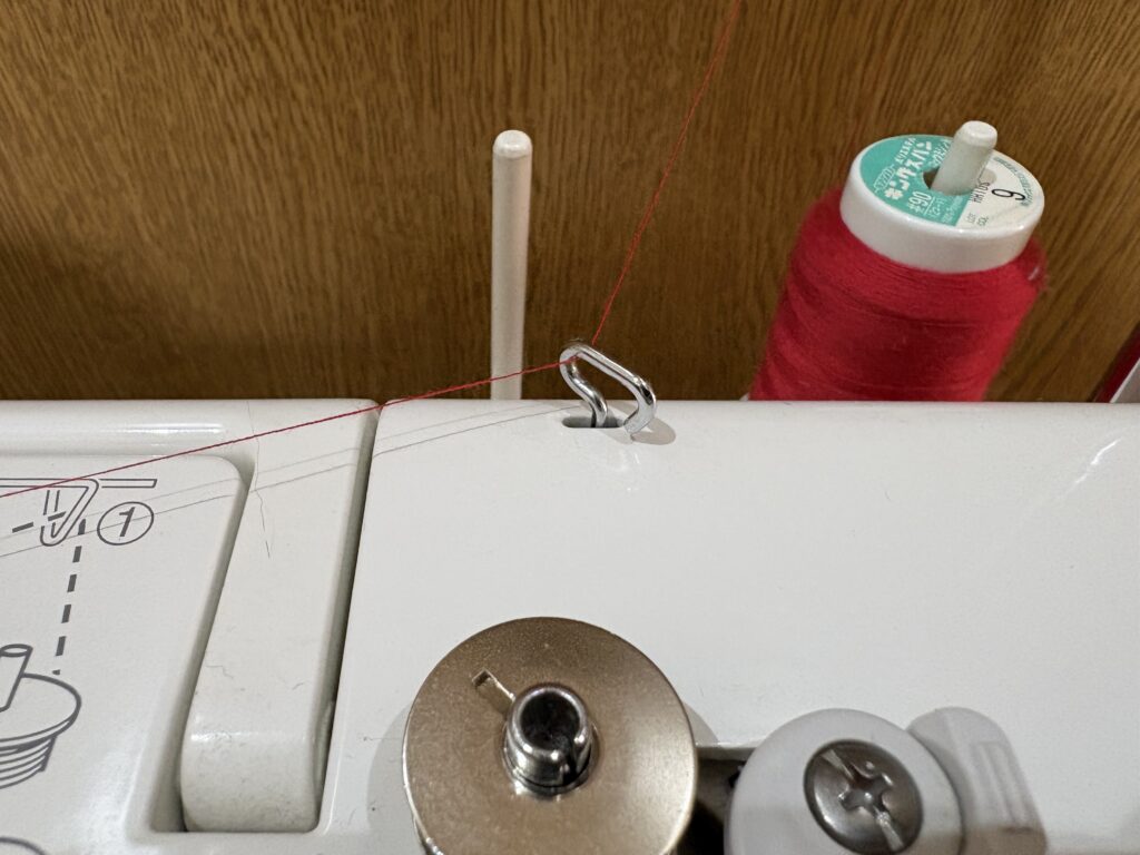 下糸巻き案内にしっかりと引っかける。