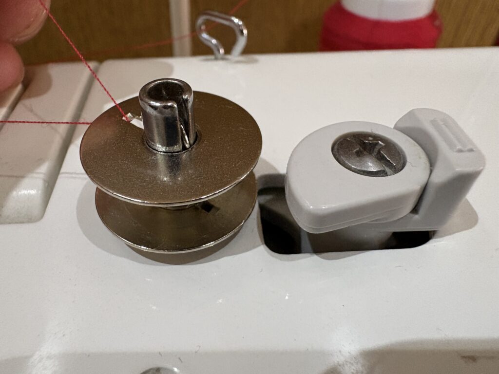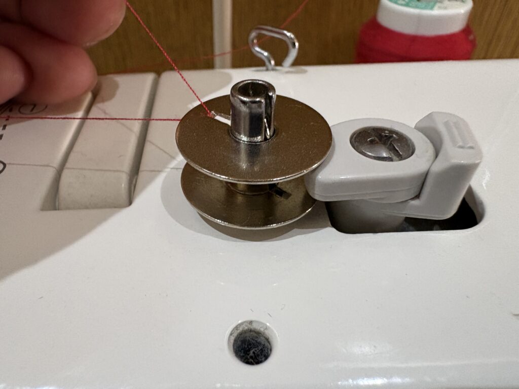 ↑ここがしっかりかかっていないと、下糸を巻けないもしくは緩く巻かれてしまう。巻くのが緩いと糸調子が合わなくなる