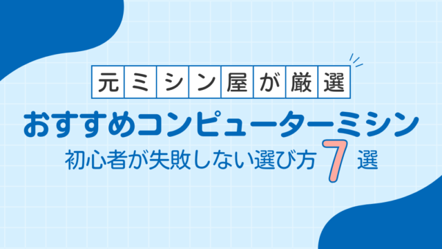 ミシン選び方・おすすめ【元ミシン屋が厳選】初心者におすすめのコンピューターミシン7選|失敗しない選び方 2024-10-06 けい こんにちは!元ミシン屋のけいです!この記事では初心者の方向けのオススメ!コンピューターミシン7機種を掲載しています。初心者の方は何 …
